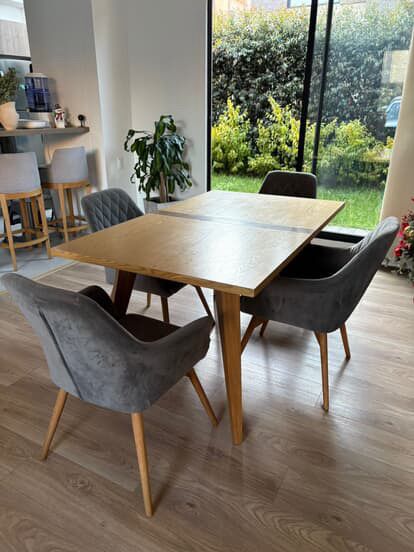 Color: gris con madera natural