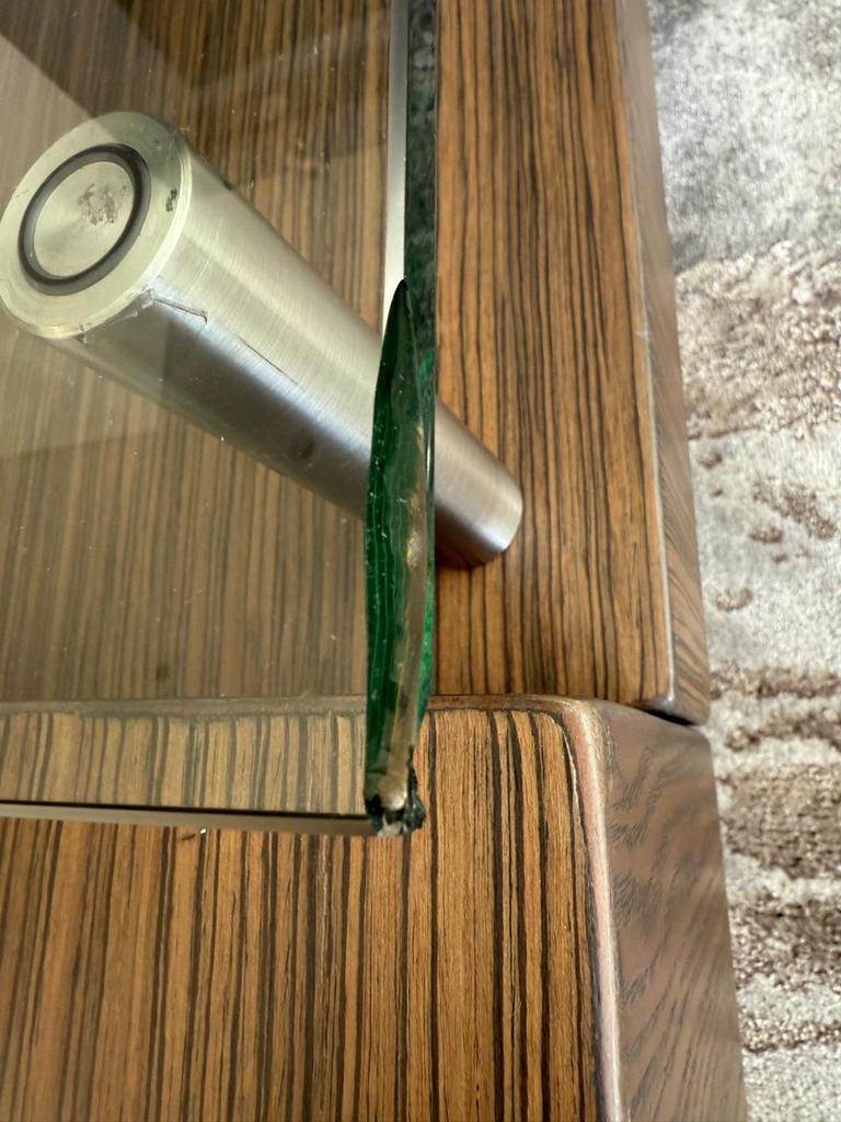 Estado: 9/10 (El vidrio tiene una esquina desportillada y la mesa tiene una pequeña mancha y tres imperfecciones)